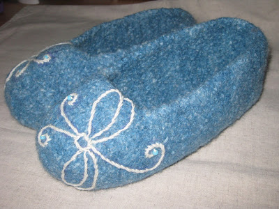 Näihin tossuihin on muutamat helmet ommeltu jälkikäteen. Tossujen ohje Babushka Ballerina Slippers (suunnittelija m.i.l.c.h.schaum). Lanka Hjertegarn Natur Uld. (© Chez MaRiia) |